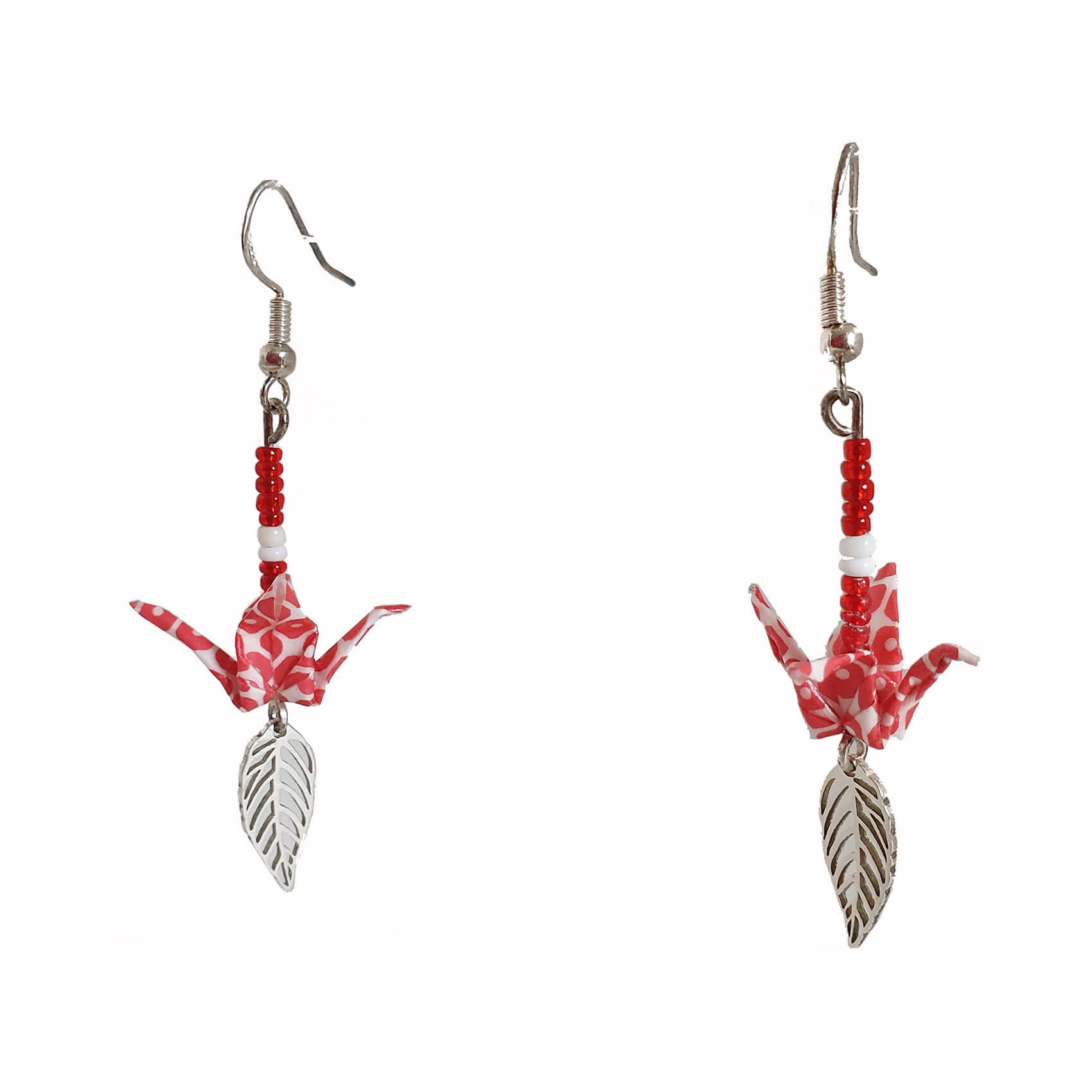 - Matériaux : argent 925, pendentif avec forme de feuille (± 15 x 7 mm), mini perles et papier origami